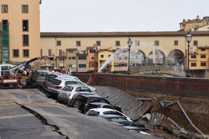Местные СМИ уточняют, что яма образовалась рано утром на набережной реки Арно, рядом со знаменитым мостом Понте Веккьо. К счастью, в это время люди еще не пришли на стоянку, поэтому пострадавших в результате инцидента нет. Длина ямы - около 200 метров.
