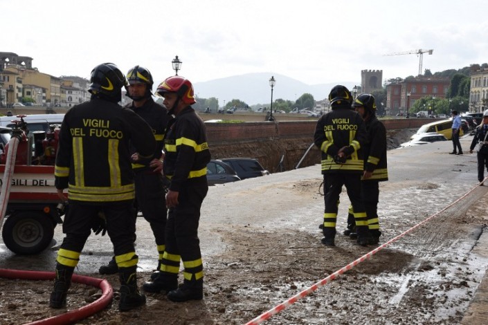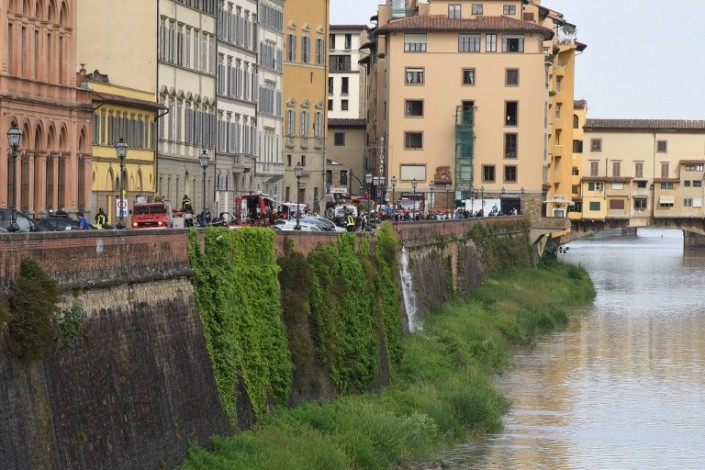 На месте ЧП работают пожарные, дорожная полиция перекрыла движение по всей набережной. По словам специалистов, причиной образования ямы и проседания грунта являются грунтовые воды Арно, но некоторые СМИ передают, что это может быть и прорыв крупной трубы городской системы водоснабжения.