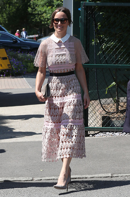 Как отмечает портал, Пиппа Миддлтон была замечена папарацци на Уимблдонском теннисном турнире. Но стройную брюнетку сопровождал вовсе не новоиспеченный супруг Джеймс Мэттьюз, а родной брат. Однако пристальное внимание общественности Пиппа привлекла не только из-за этого обстоятельства. Для выхода в свет Миддлтон выбрала прозрачное кружевное платье. Несмотря на провокационный наряд, младшая сестра Кейт осталась скромницей - белье телесного цвета прикрыло все интимные подробности фигуры.