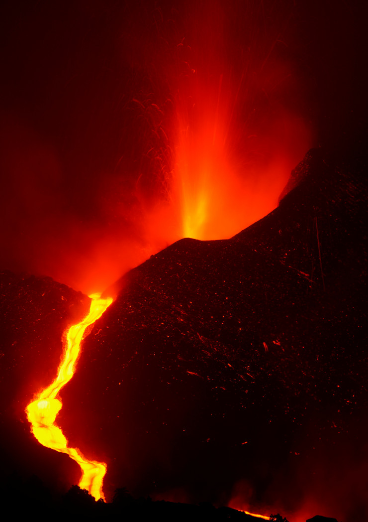 После обрушения северной части кратера из вулкана потекли потоки лавы, несущие с собой глыбы размером с трехэтажный дом. По последним данным, лава накрыла 497 гектаров территории острова Пальма. Более 1,1 тысячи строений были разрушены. С острова срочно эвакуировали около шести тысяч человек.