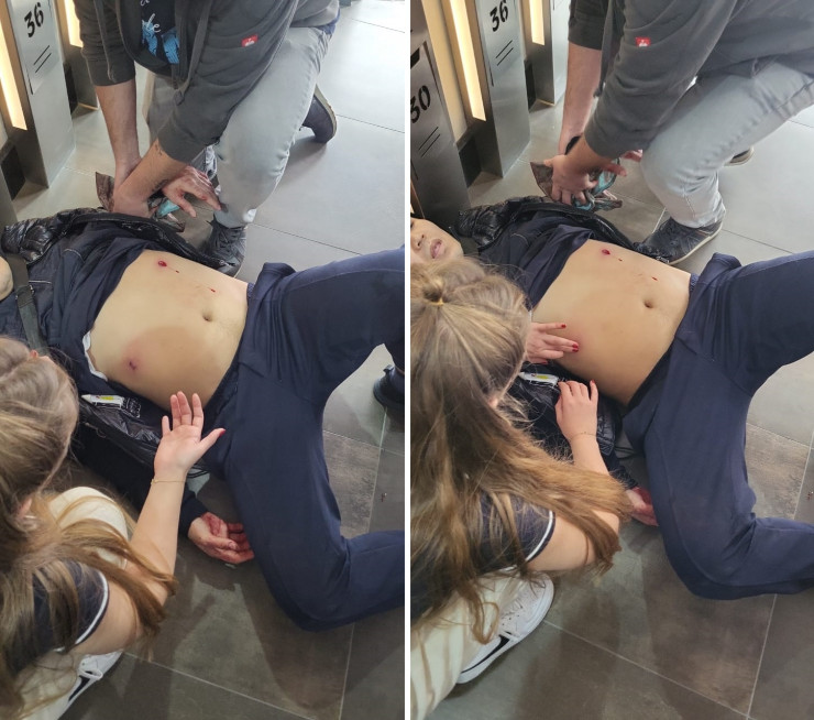 "Мы решили свозить детей в торговый центр, чтобы они поиграли. Возвращались назад, уже буквально стояли перед подъездом. В это время начались выстрелы. Я с сыном успела забежать в здание, а муж с коляской шел сзади. И пуля попала в него, в боковую часть живота: она зашла с одной стороны, но не вышла с другой, оставив там следы и гематому.