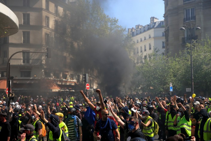 Протесты "желтых жилетов" начались во Франции 17 ноября 2018 года с требованиями не повышать налог на топливо и цены на бензин. Недовольные социальной политикой французских властей участники движения продолжают выходить на улицы по всей стране, несмотря на объявленные руководством Франции меры для успокоения обстановки. Зачастую акции сопровождаются беспорядками и столкновениями с полицией.