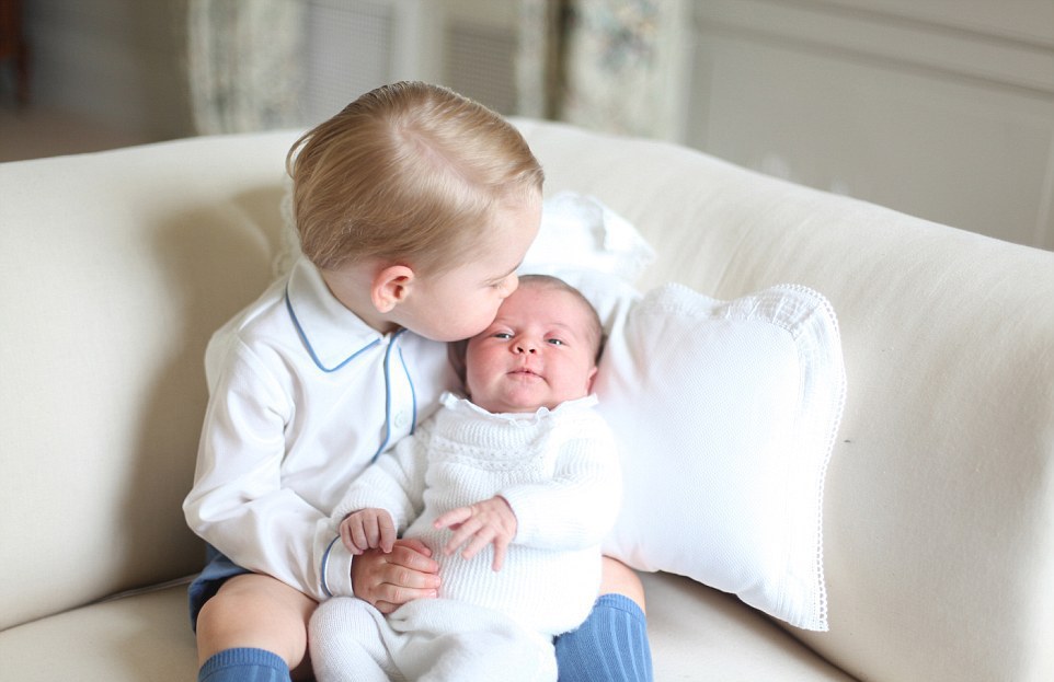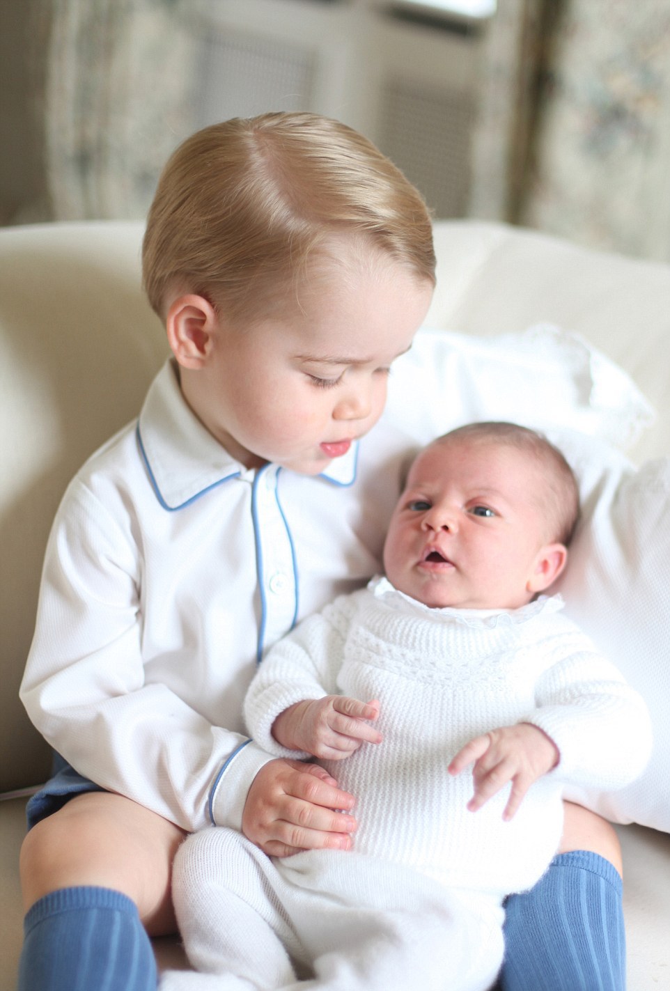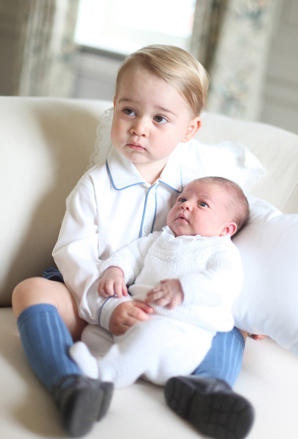 На снимках, сделанных фотоаппаратом Canon EOS 5D Mark II в загородном доме четы в Норфолке, двухнедельная принцесса Шарлотта запечатлена вместе со своим двухлетним братом - принцем Джорджем.