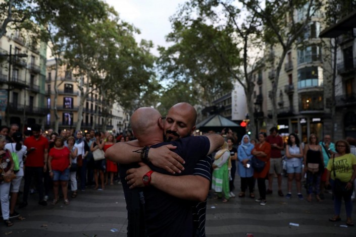 Человек предлагал любому прохожему свои объятия в знак демонстрации единства после теракта в Барселоне. Мусульманина окружила толпа людей. Многие подходили и обнимали мужчину. Судя по видео, опубликованному на странице одной из пользовательниц Facebook, такой поступок вызвал искренние аплодисменты горожан.