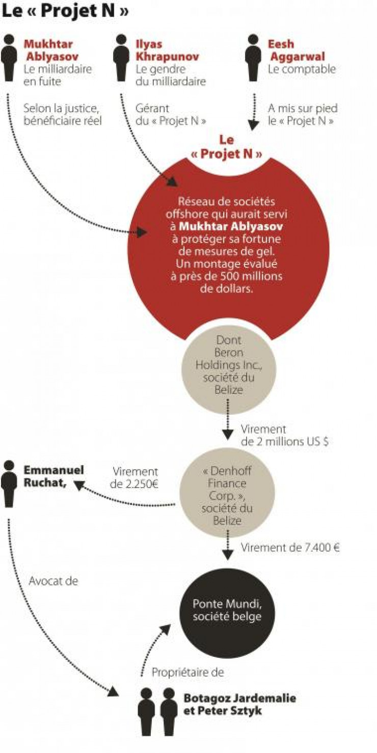 На данный момент нет информации о том, что относительно компании Denhoff Finance Corp. ведется какое-либо уголовное преследование. Однако Le Soir пишет, что, по данным британского правосудия, Beron Holdings Inc., от которой Denhoff якобы получила 2 миллиона долларов, оказалась частью сети офшорных компаний под названием "Проект N", которую создали Мухтар Аблязов совместно с Ильясом Храпуновым. Помог им, по данным издания, в этом британский бухгалтер Эш Аггарвал, который специализируется на офшорных схемах.