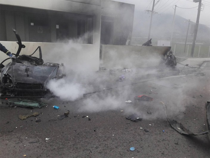 ДТП произошло 26 февраля на национальной автомагистрали Афины - Ламия. Судя по записи камер наблюдения, водитель Porsche не справился с управлением. Автомобиль вылетел со скоростной магистрали и врезался в припаркованную машину. Сообщается, что от удара автомобиль Honda Civic разнесло на части. Обе машины превратились в огненную массу, пишет агентство.