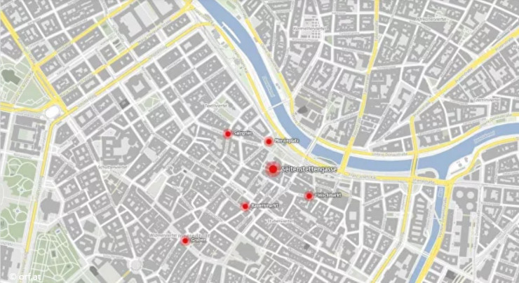 ORF телеарнасы террористер шабуылдаған жерлерді картада көрсетті.