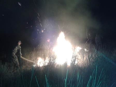 Пожар произошел 04 июня в 14.54 в Байзакском районе на территории Байзакского ГУ по охране лесов и животного мира. На предварительной площади 100 гектаров произошло загорание сухой травы и кустарников. Уточняется, что пожар разгорелся на участке Белькудык - Караматау в 105 километрах от ближайшей пожарной части.