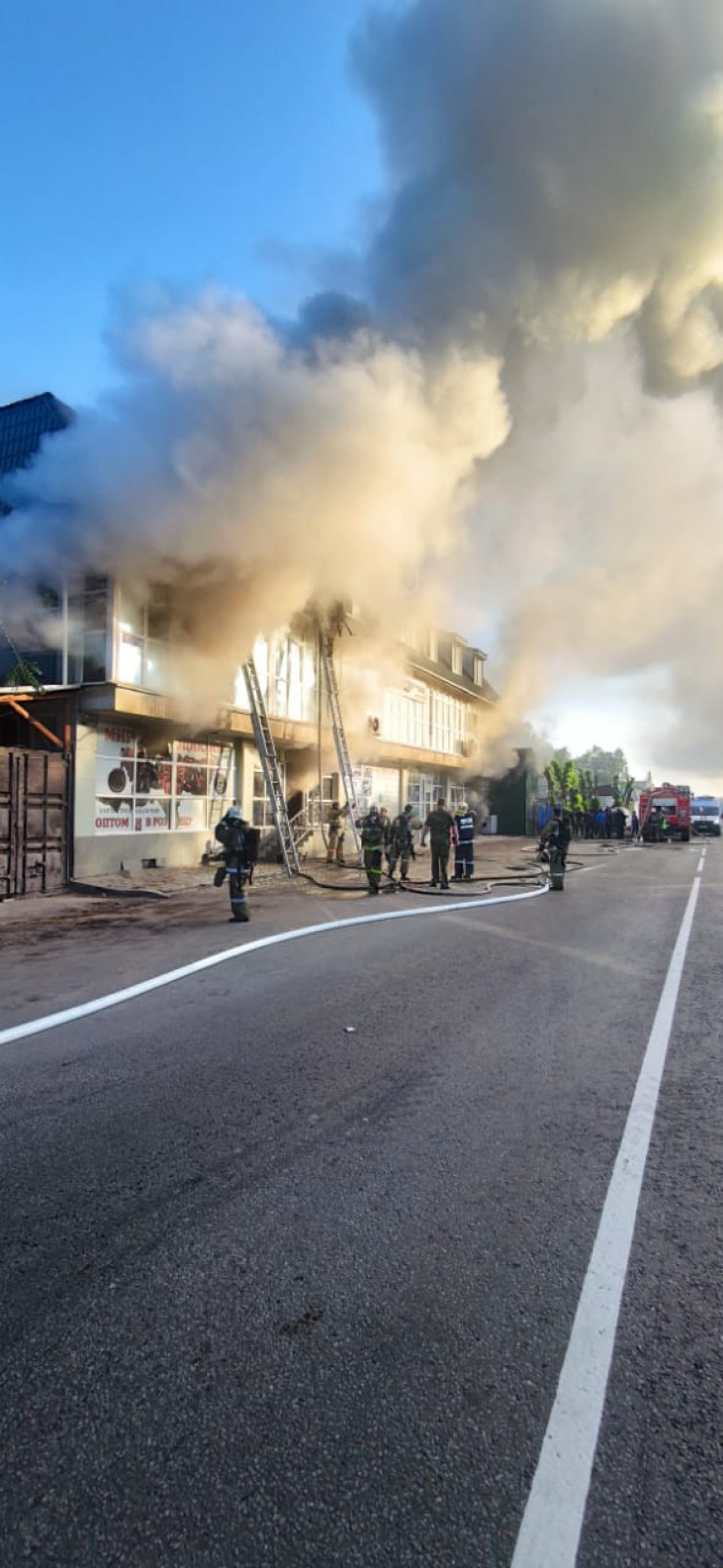 Сообщается, что 16 мая в 05.52 утра силы и средства ДЧС выехали по повышенному рангу на сообщение о пожаре в микрорайоне Карасу. По прибытии обнаружено горение открытым пламенем подвального помещения двухэтажного здания с мансардой. В нарушение требований правил пожарной безопасности под навесом, вплотную пристроенным к зданию, осуществлялось складирование пиломатериалов, картонных коробок и других элементов корпусной мебели.