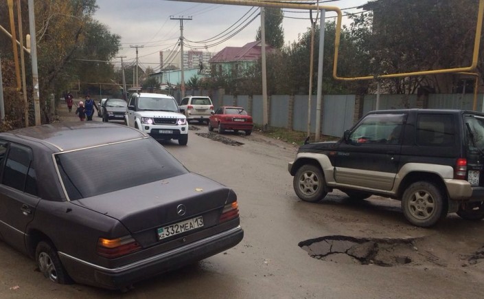 Акимат пообещал восстановить провалившийся асфальт на дороге в Алматы до ноября