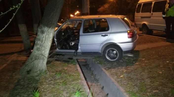 В Алматы водитель Volkswagen Golf выехал на "встречку" и врезался в дерево, сообщает корреспондент программы "Территория происшествий" на телеканале СТВ.
