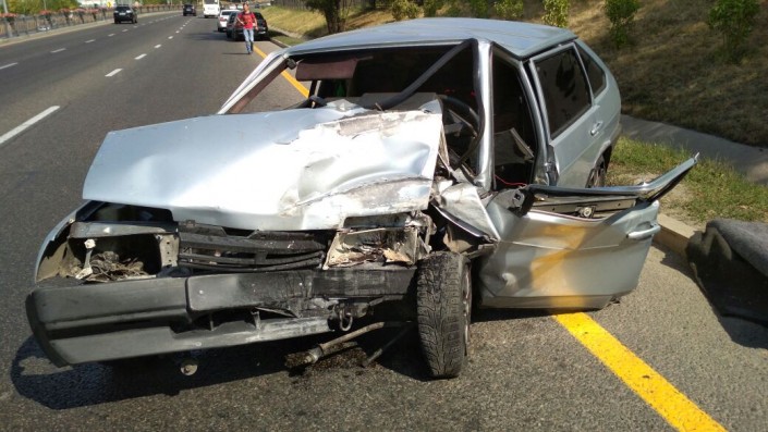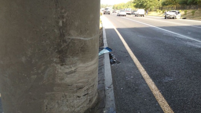 Со слов очевидцев, машина двигалась по Восточной объездной дороге в северном направлении. В районе пересечения с улицей Толе би автомобиль подрезали, и, уходя от столкновения, водитель въехал в толстую опору столба.