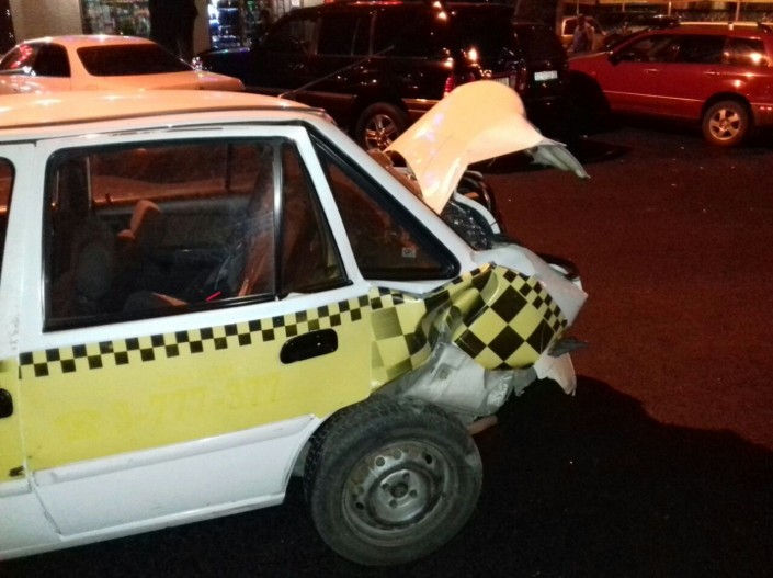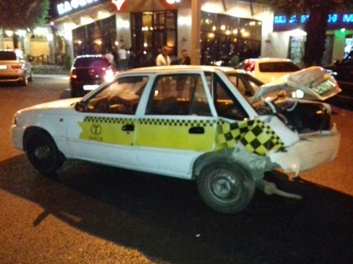 Авария произошла на пересечении улиц Акан Серы и Джапаридзе. Со слов очевидцев, водитель внедорожника двигался по Акан Серы в южном направлении и на полном ходу протаранил Daewoo Nexia. Сразу после этого водитель Toyota Land Cruiser скрылся с места происшествия.