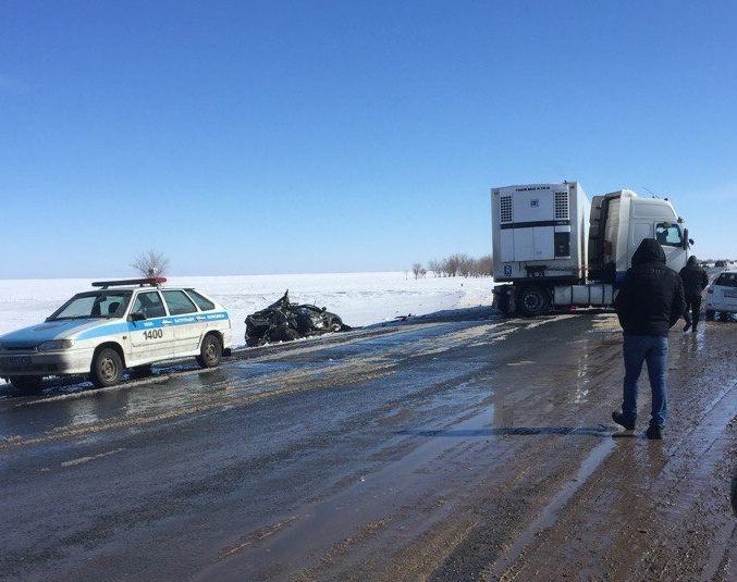 В местной полицейской службе сообщили, что авария произошла в 20 километрах от города, в районе поселка Махамбет Зеленовского района. Сейчас на место ДТП выехали сотрудники ДПС. Они составляют протокол.