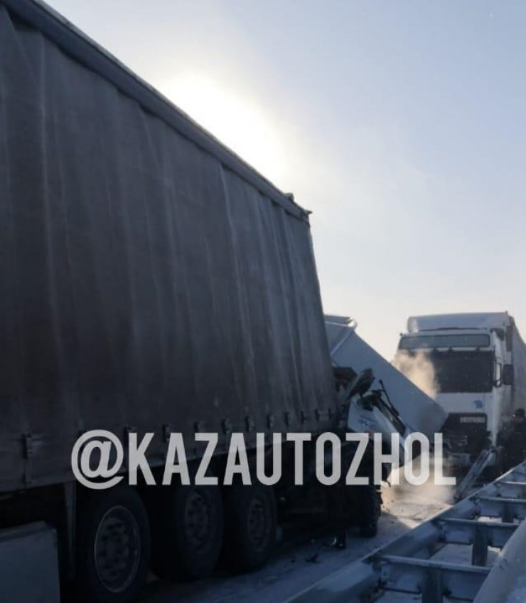 Авто зажало между грузовиками по дороге в Нур-Султан. Двое погибли
