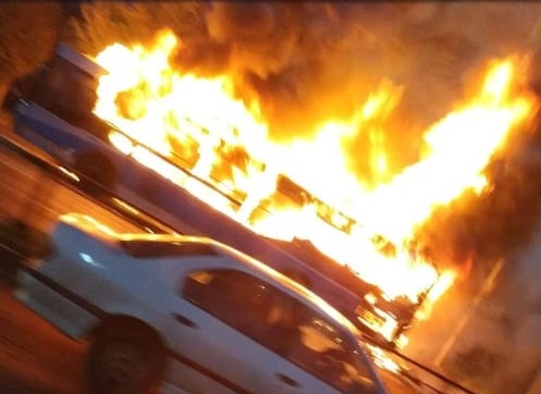 Автобус сгорел на Аль-Фараби в Алматы