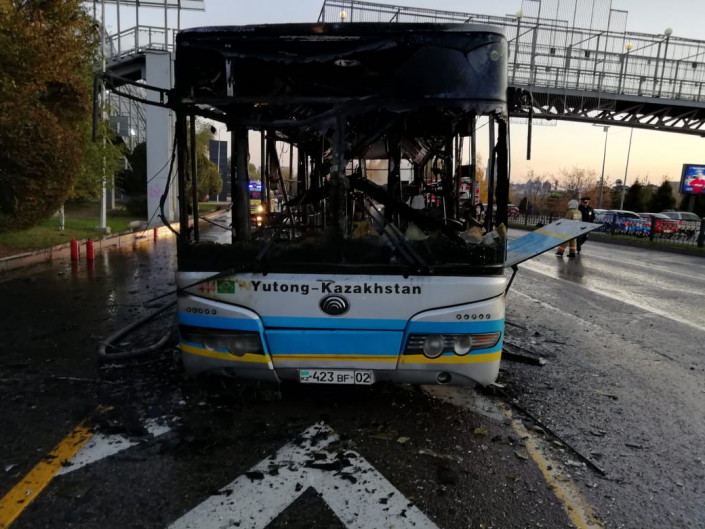"Утром, в соответствии с процедурой, автобус прошел технический осмотр у механика парка. Далее выехал из парка по расписанию. Направлялся в конечный пункт для начала работы на маршруте. На проспекте Аль-Фараби между улицей Жарокова и улицей Водозаборная у него загорелся "чек" масла. Прижался вправо. Водитель пошел проверять, открыл капот. Резко началось сильное возгорание. Вызвал пожарных. До момента приезда пожарных было использовано пять огнетушителей из мимо проезжающих автобусов. Пассажиров в салоне не было, причина возгорания устанавливается, пострадавших нет. Транспортное средство сгорело дотла, остался только остов. Автобус восстановлению не подлежит", - сообщили в компании.