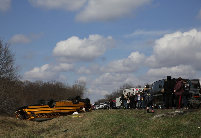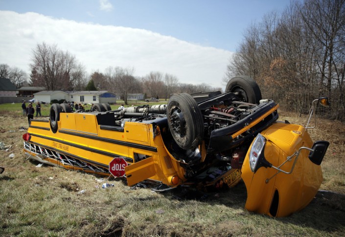 По данным правоохранителей, авария произошла после того, как автомобиль задел бок автобуса, в котором ехала баскетбольная школьная команда. Водитель автомобиля уронила емкость с напитком, попыталась поднять его, после чего потеряла контроль над машиной.