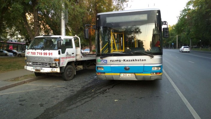 Автобус столкнулся с эвакуатором в Алматы, передает корреспондент программы "Территория происшествий" на канале СТВ.