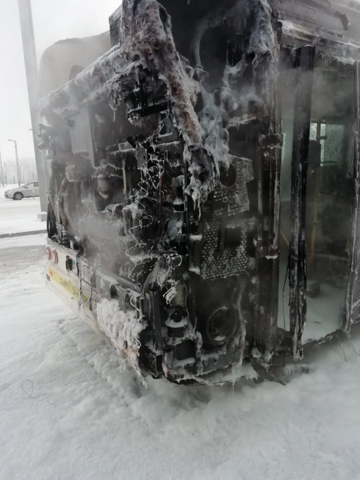 "По словам водителя, он услышал хлопок и началось воспламенение. Пытался самостоятельно с помощью огнетушителя ликвидировать возгорание, но не получилось. Водитель вызвал противопожарную службу.На место происшествия выехали сотрудники специальной лаборатории для выяснения причины возгорания автобуса", - сообщила позже пресс-секретарь.