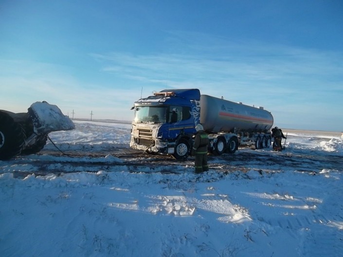 По оперативной информации сообщение о происшествии поступило сегодня, 13 декабря около девяти часов утра. Автоцистерна Scania груженная сжиженным газом оказалась в кювете в трех километрах от села Успенка Павлодарской области.