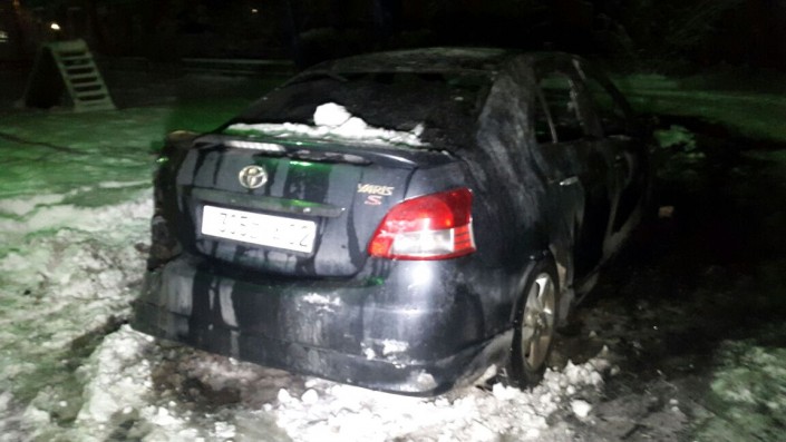Автомобиль Toyota Yaris был припаркован во дворе жилого дома на улице Жибек Жолы. Огнем был уничтожен моторный отсек по всей площади и салон авто.