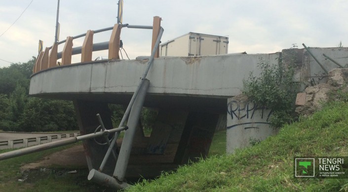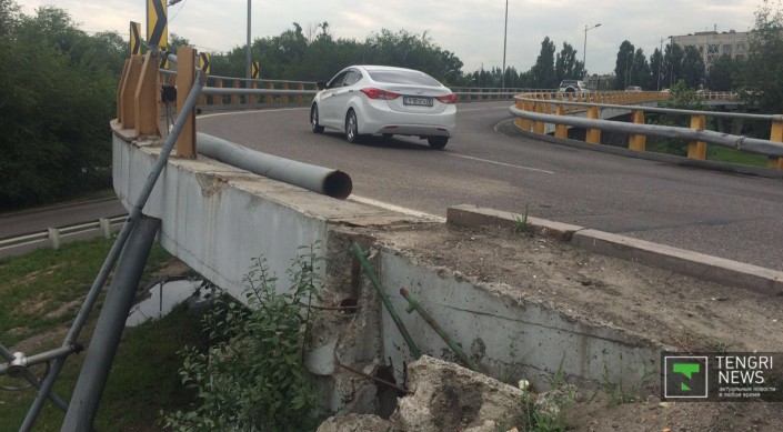 В Алматы автомобиль Hyundai Santa Fe вылетел с моста развязки, передает корреспондент Tengrinews.kz. ДТП произошло на улице Саина утром 4 июля около 7.00.