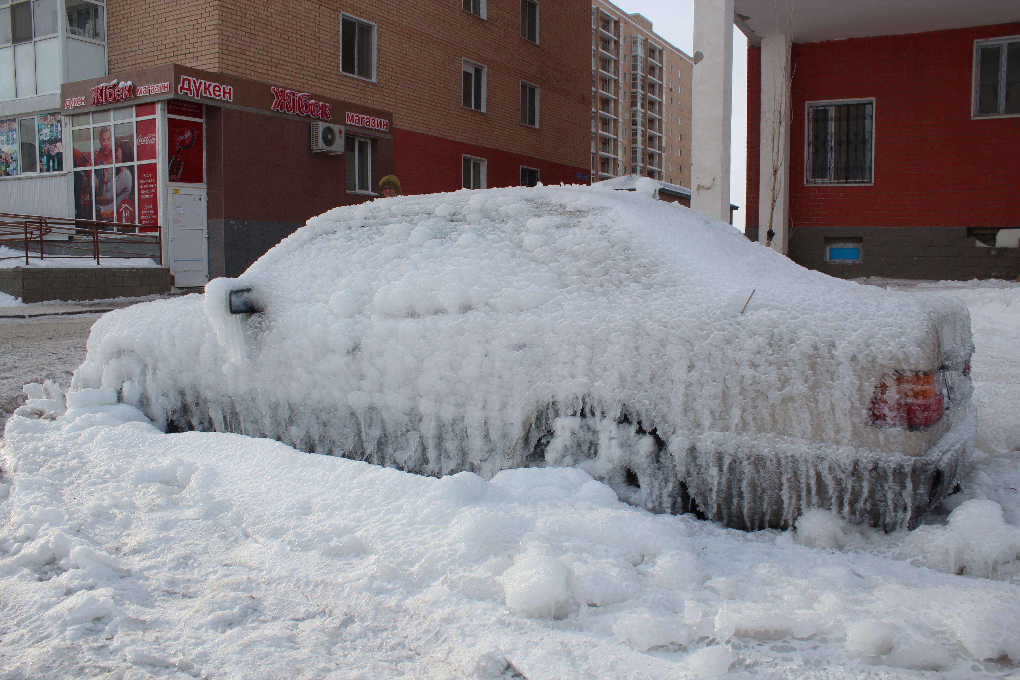 Автомобиль превратился в глыбу льда в Астане, сообщает Tengrinews.kz. Этой ночью в столичном жилом комплексе "Турсын Астана", расположенном по улице Рахымжана Кошкарбаева, произошло коммунальное бедствие. О нем редакции портала сообщил читатель Tengrinews.kz, предоставив фотографии с места ЧП.