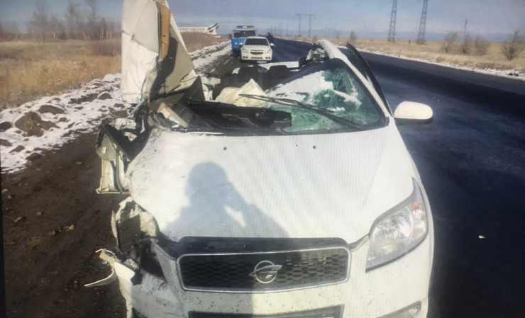 Автомобилю снесло половину кузова на трассе близ Рудного Фото: ДП Костанайской области.