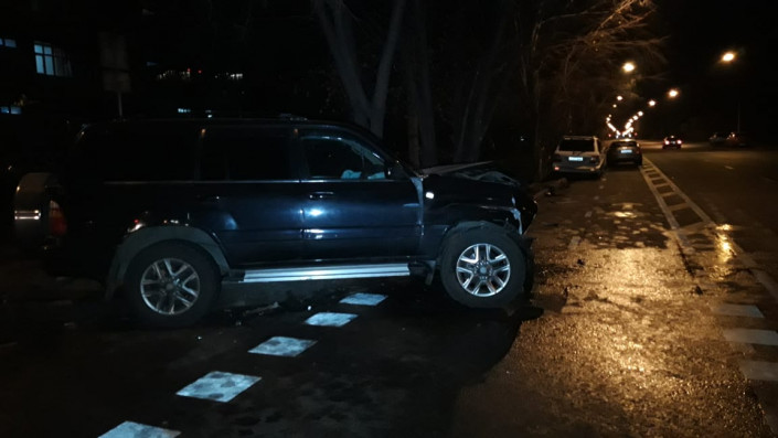 ДТП произошло на перекрестке улиц Шевченко и Байзакова. Со слов очевидцев, водитель белого внедорожника двигался в западном направлении по улице Шевченко. Land Cruiser черного цвета следовал по Байзакова в южном направлении, по невыясненным причинам проигнорировал знак "Уступи дорогу" и на перекрестке на полном ходу ударил в бок белый Land Cruiser, который после удара залетел на бордюр и врезался в дерево.