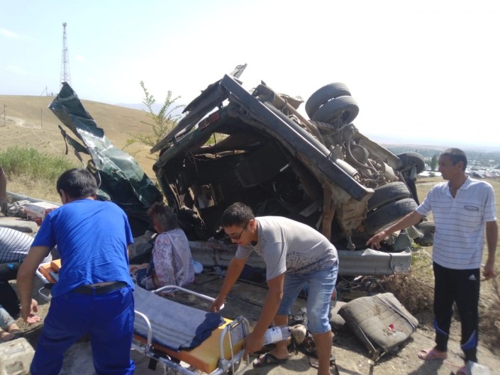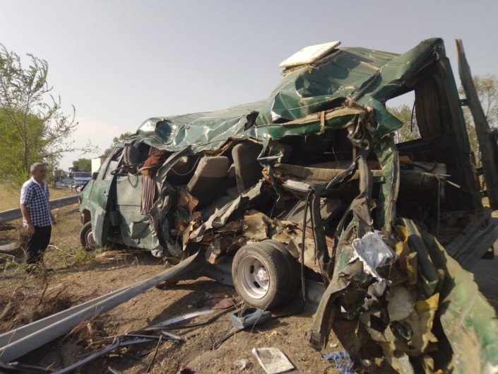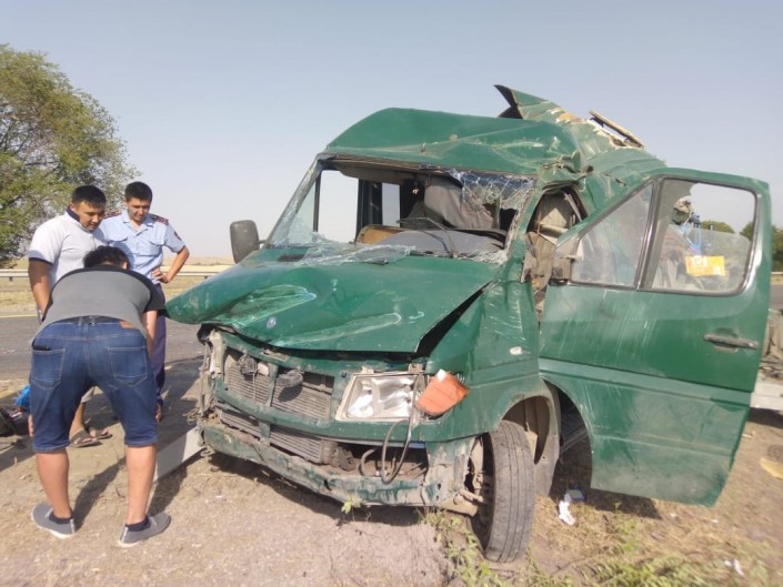 Авария случилась днем 13 августа на трассе Алматы - Бишкек, в районе села Узынагаш. В момент инцидента в салоне микроавтобуса, который ехал из Тараза в Алматы, находились 17 пассажиров.