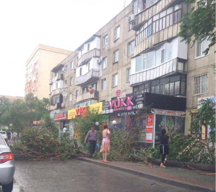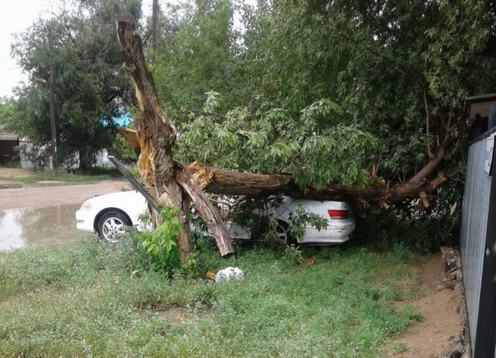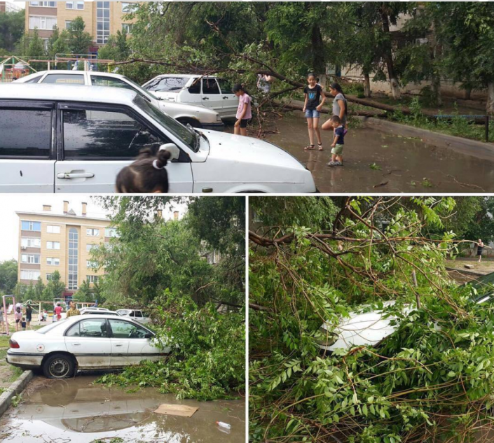 "Улица Гришина. Деревья упали на автомобили", - гласит подпись под фото @gorod_aktobe.