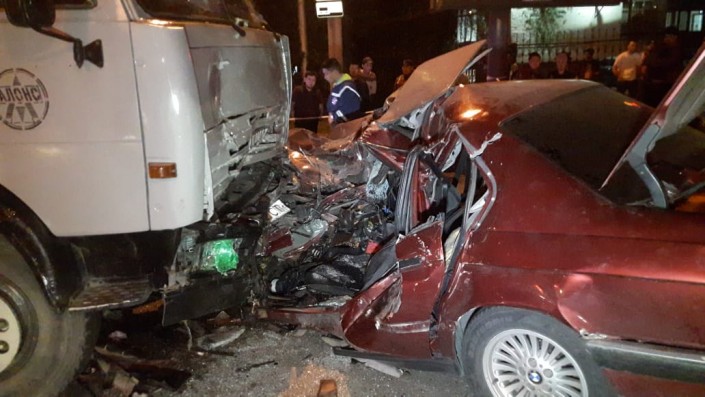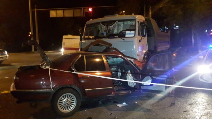 ДТП произошло на пересечении проспекта Сейфуллина и улицы Жибек Жолы. По словам очевидцев, грузовик двигался по Сейфуллина в южном направлении и на перекрестке водитель решил повернуть налево. В этот момент в него на большой скорости врезался ехавший на север BMW.