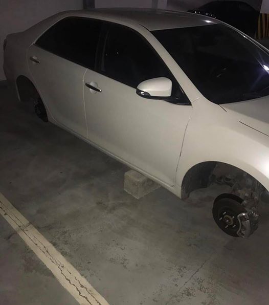 "Сегодня утром обнаружил свою машину в таком виде! Ночью, в охраняемом подземном паркинге ЖК "Нурлы Тау", человек, не стесняясь камер и охраны, не спеша, скрутил все колеса и уехал. Зафиксировали все вызовом полиции, посмотрим..." - написал он в Facebook и Instagram.