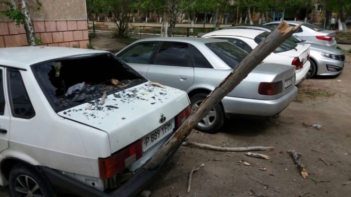 Дерево упало на автомобили в Костанае Фото alau.kz