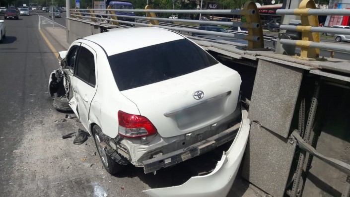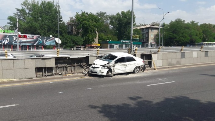 Девушка на Toyota врезалась в бетономешалку в Алматы