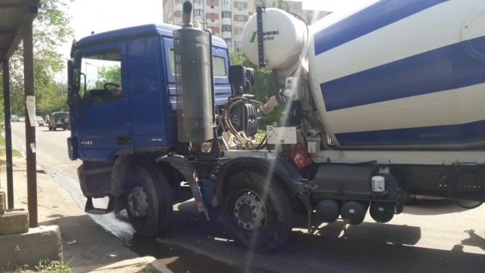 Автомобиль Toyota врезался в бетономешалку в Алматы, сообщает корреспондент программы "Территория происшествий" на телеканале СТВ.