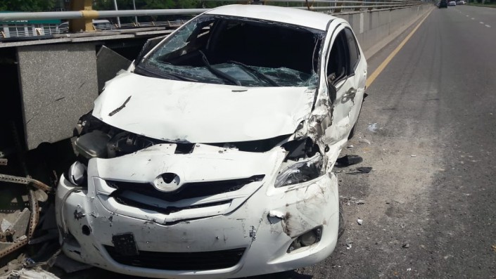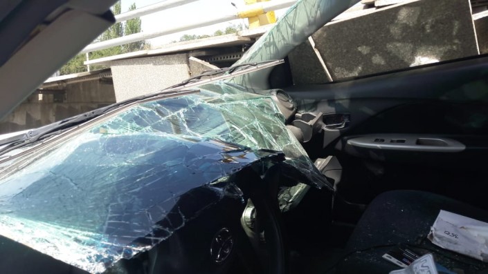 Девушка на Toyota врезалась в бетономешалку в Алматы Фото ©"Территория происшествий" на телеканале СТВ