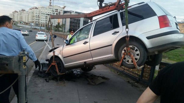 ДТП произошло на мосту, который ведет к Дому министерств на левобережье Астаны. По словам очевидцев, за рулем находилась девушка, она госпитализирована. Искореженный автомобиль увезли на эвакуаторе.