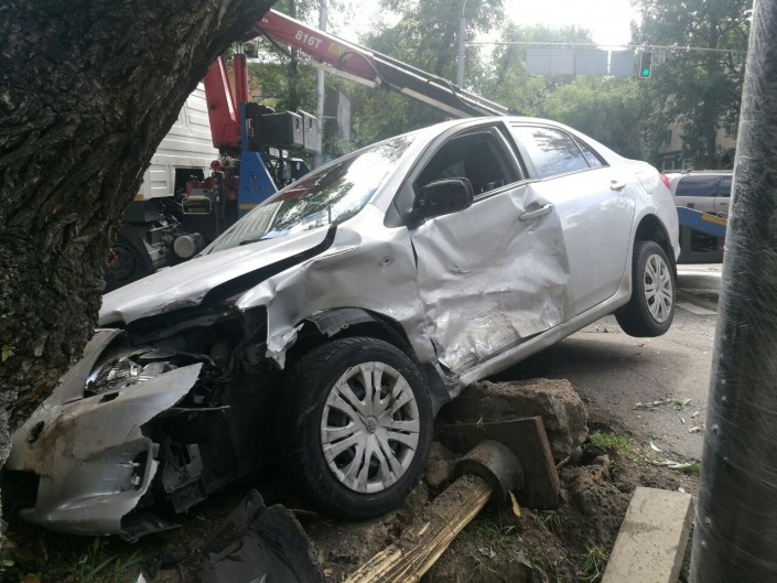 ДТП в центре Алматы: Toyota закрутило и отбросило на светофорный столб Фото Владимир Прокопенко©
