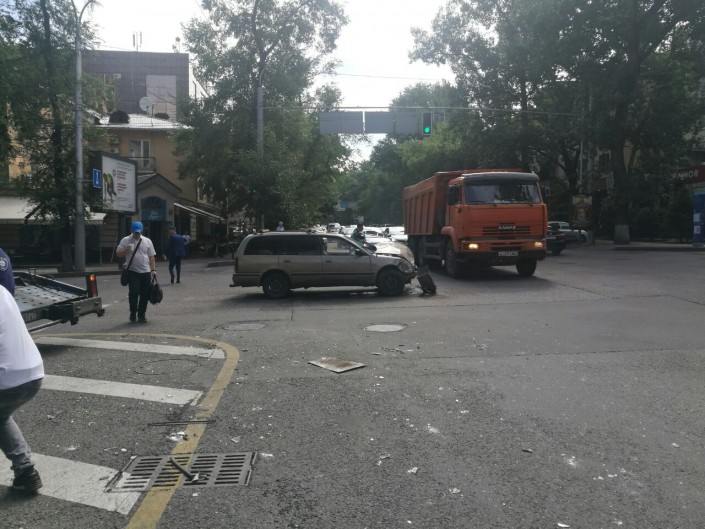 Со слов очевидцев, следуя по улице Курмангазы, Toyota на зеленый свет начала пересекать Желтоксан. В этот момент ей в бок врезался Nissan, который ехал вниз по односторонней улице.  Toyota закрутило и отбросило на светофорный столб.