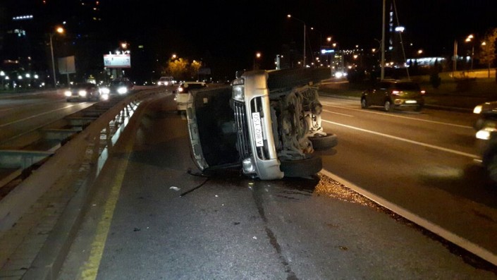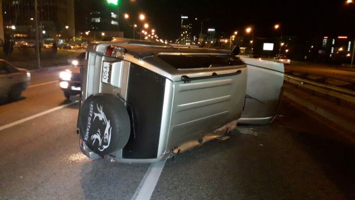 Еще одно ДТП примерно в это же время произошло по проспекту Аль-Фараби между улицами Сейфуллина и Желтоксан в Алматы. Авто марки Toyota Prado двигалось в восточном направлении по Аль-Фараби, и на затяжном повороте водитель не справился с управлением. В результате этого авто врезалось в бордюр и перевернулось. Пострадавших в данном ДТП нет.
