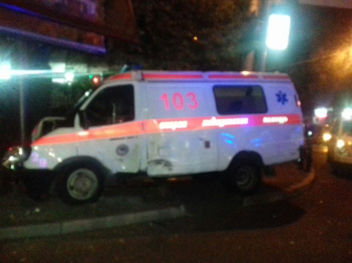 Инцидент произошел на пересечении улиц Сатпаева и Манаса. Со слов очевидцев, водитель автомашины Nissan Cefiro, двигаясь по Сатпаева в западном направлении, на регулируемом перекрестке выехал на запрещающий сигнал светофора и столкнулся с каретой скорой помощи. От удара скорая вылетела на бордюр и врезалась в билборд.