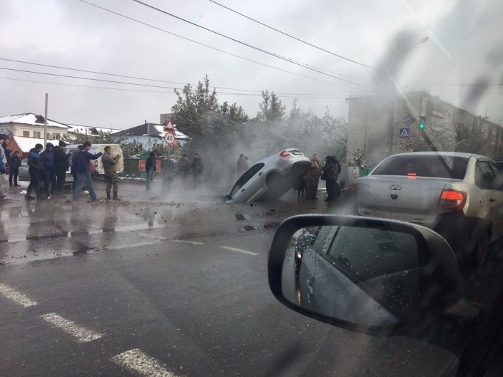 Два автомобиля провалились под асфальт в Петропавловске