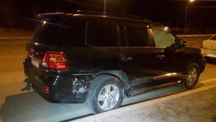 На пересечении улиц Момышулы и Жана жол столкнулись Toyota Land Cruiser и Daewoo Nexia. По словам очевидцев, внедорожник с прицепом двигался в южном направлении по Момышулы и готовился совершить левый поворот. В этот момент в него на полном ходу врезалась Daewoo Nexia, которая двигалась на север по Момышулы.