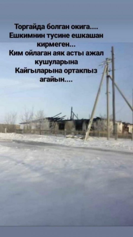 Трагедия произошла 15 декабря в поселке Торгай. Огонь вспыхнул, когда семья села ужинать. В доме проживали 10 человек - пятеро взрослых и пятеро детей. Через 20 минут после начала возгорания рухнула крыша.