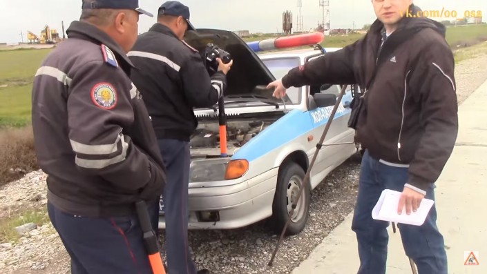 На видео активисты движения ОСА, как они говорят в кадре, "поймали на нарушении" сотрудников патрульной службы на трассе Шымкент - Кызылорда. По их словам, полицейские неправильно эксплуатировали прибор измерения скорости "Визир". Соответственно, неверно выписывали штрафы водителям.