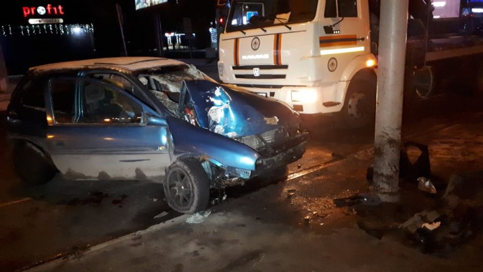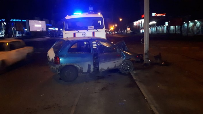 Столкновение произошло на пересечении улиц Толе би и Ауэзова. По словам очевидцев, автомобиль Opel двигался в восточном направлении по Толе би. По невыясненным причинам водитель не справился с рулевым управлением и на полном ходу врезался в светофорный столб.