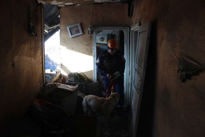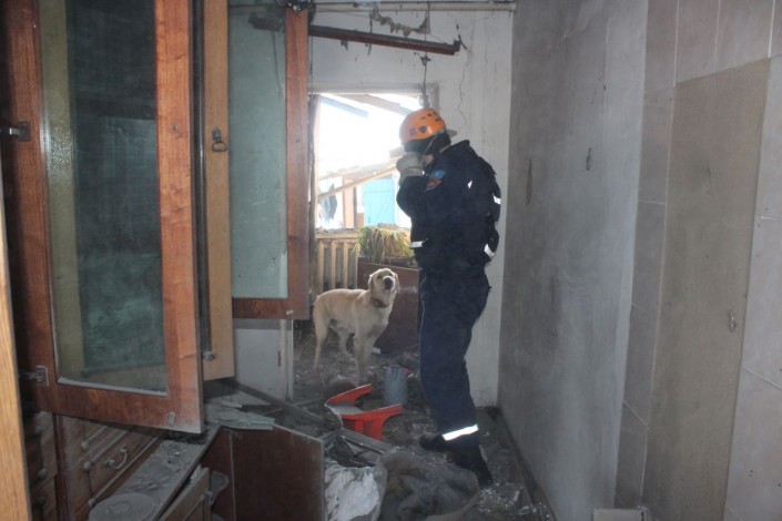 На место происшествия прибыли сотрудники службы пожаротушения и аварийно-спасательных работ ДЧС ВКО и кинологический расчет со спасателями ВРАОСО. Специально обученная собака произвела осмотр разрушенного помещения в поисках людей. Следов обнаружено не было.