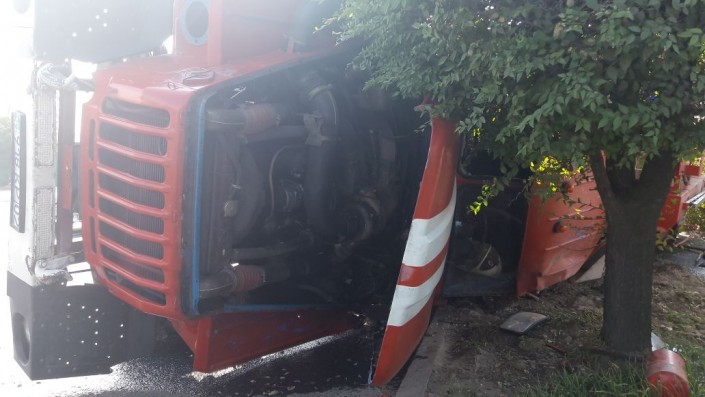 Водитель пожарной машины вывернул рулем влево, чтобы не зацепить автомашину, снес дерево и перевернулся. В ходе инцидента никто не пострадал. Сотрудники полиции оцепили квартал и занимаются ручной регулировкой транспортного потока, поскольку образовалась пробка. Пожарное авто поставили на колеса краном.